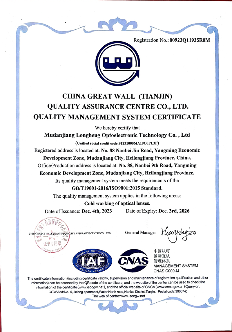質(zhì)量體系-牡丹江市蘢恒光電科技有限公司